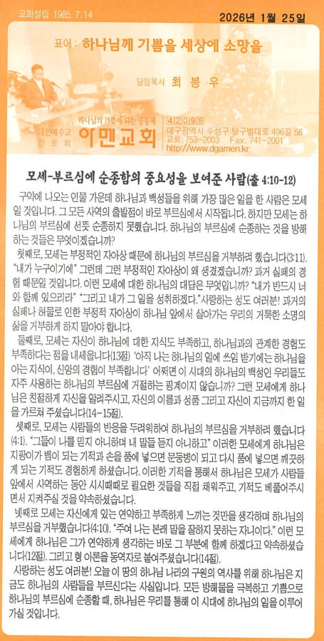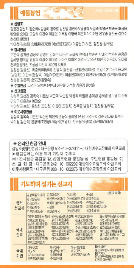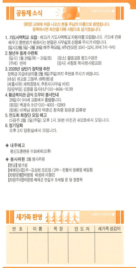 | 6 | 2026년 1월 25일 주보 | 대구아멘교회 | 2026-02-28 | 23 | |