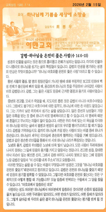 | 9 | 2026년 2월 15일 주보 | 대구아멘교회 | 2026-02-28 | 22 | |
