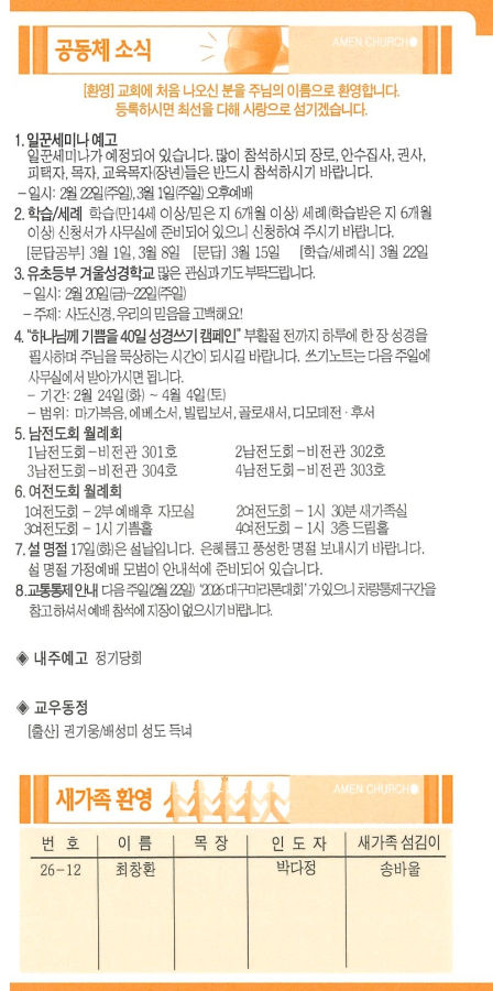 | 7 | 2026년 2월 1일 주보 | 대구아멘교회 | 2026-02-28 | 20 | |