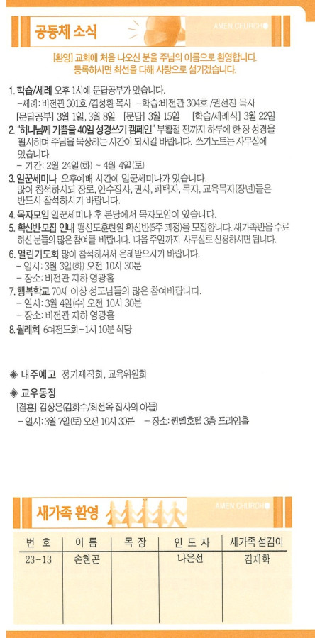 | 13 | 2026년 3월 15일 주보 | 아멘교회 | 2026-03-15 | 76 | |