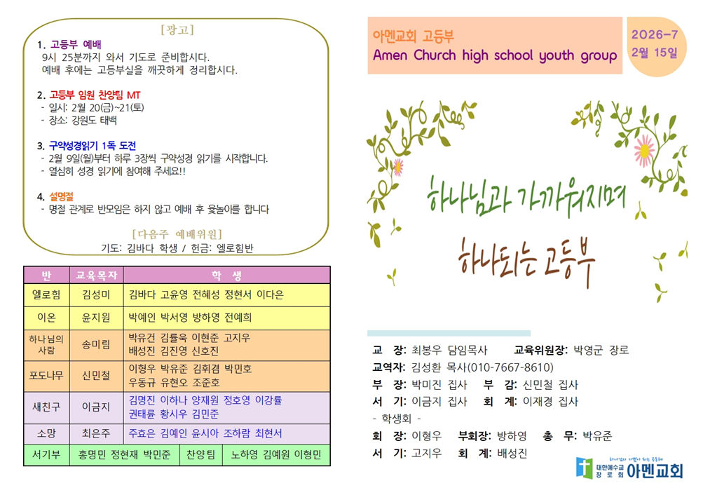 | 7 | 2026-02-15 고등부 예배 | 아멘교회 | 2026-03-08 | 14 | |