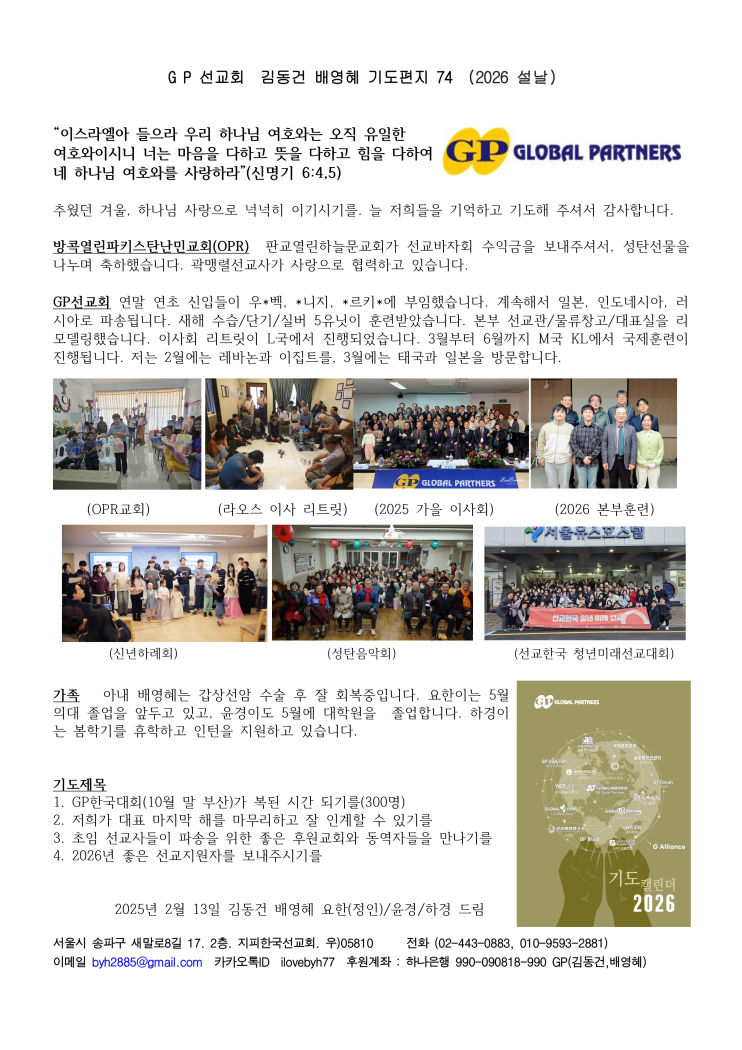 | 6 | 태국 김동건 선교사님 2월 편지 | 아멘교회 | 2026-03-15 | 17 | |