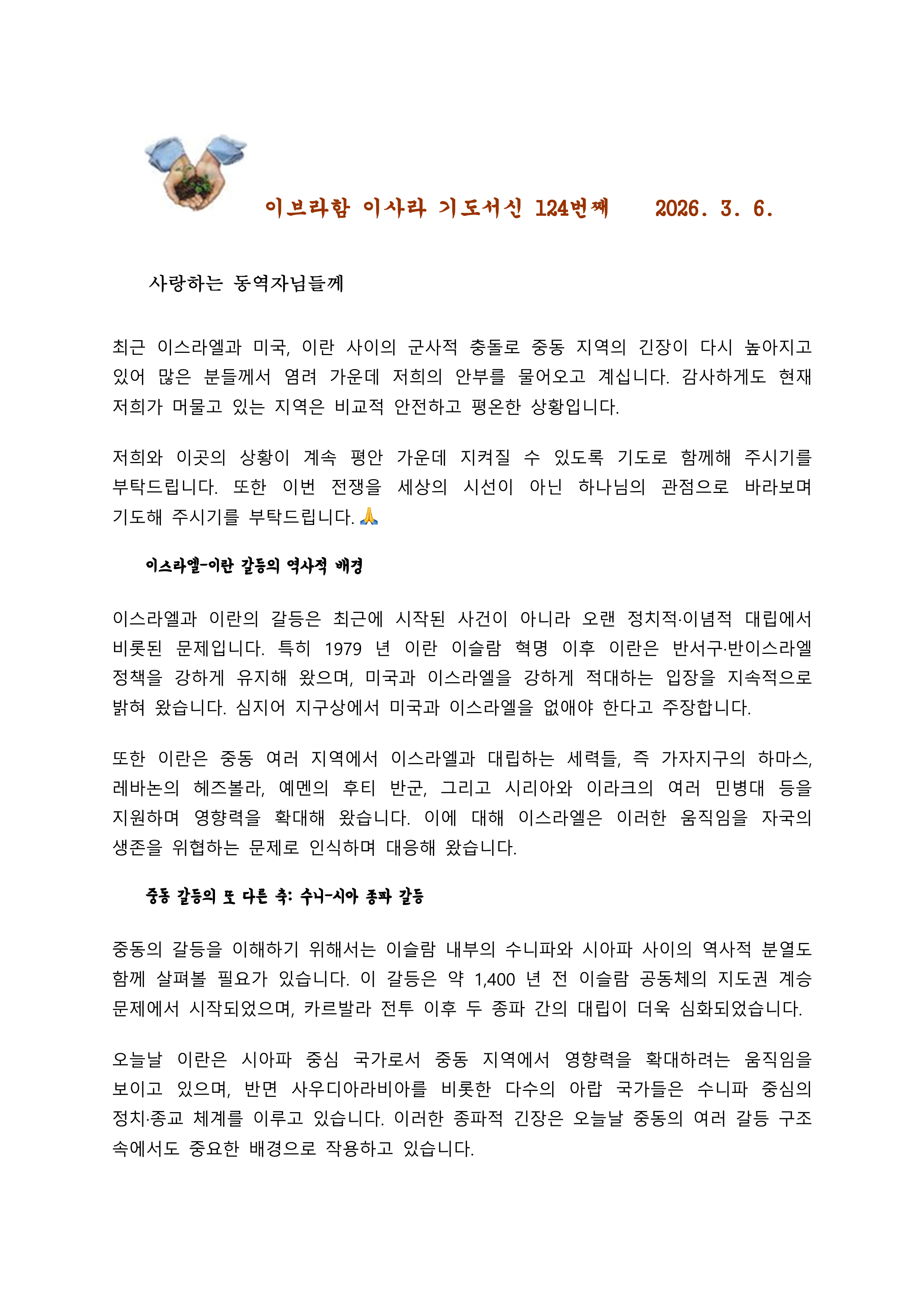 | 12 | 두바이 이브라함 선교사님 2월 편지 | 아멘교회 | 2026-03-15 | 16 | |