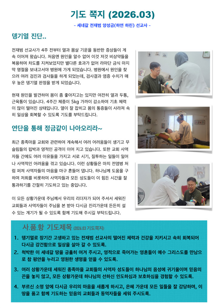 | 15 | 세네갈 전재범선교사님 3월 편지 | 김찬양 | 2026-03-28 | 12 | |